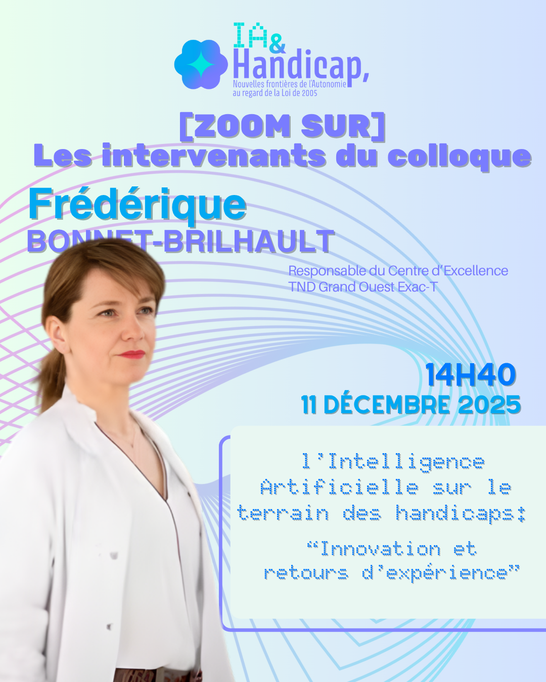 Responsable du Centre d’Excellence TND Grand Ouest Exac-T. Découvrez aujourd’hui qui est Frédérique Bonnet-Brilhault, professeure de pédopsychiatrie à l’Université de Tours et cheffe du service de pédopsychiatrie au CHRU de Tours.
