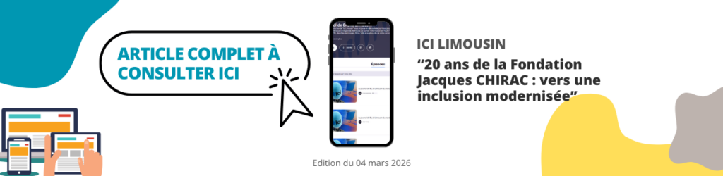 « La Fondation Jacques CHIRAC, fondée en Corrèze par l’ancien député et président de la République. Elle fête ses 20 ans cette année dans sa forme actuelle puisque cette fondation a pris la suite de l’Association des centres éducatifs du Limousin. «
