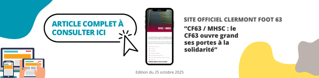 Le Clermont Foot 63 poursuit son engagement citoyen et solidaire avec une belle initiative : l’opération “Cœur Rouge & Bleu”. À l’occasion de la 12e journée de Ligue 2 BKT, ce mardi 28 octobre, le club auvergnat invite 1 000 personnes issues de différentes associations caritatives à venir assister gratuitement à la rencontre Clermont Foot 63 / Montpellier HSC au stade Gabriel-Montpied.