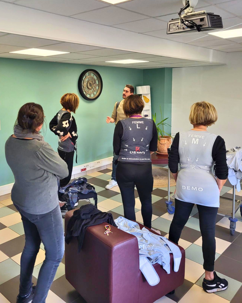 Les équipes ont pu découvrir et tester ce matériel innovant, lors d’un temps d’échange organisé avec le Groupe RG et M. Bonnefoy, autour des enjeux de santé et de prévention au travail.