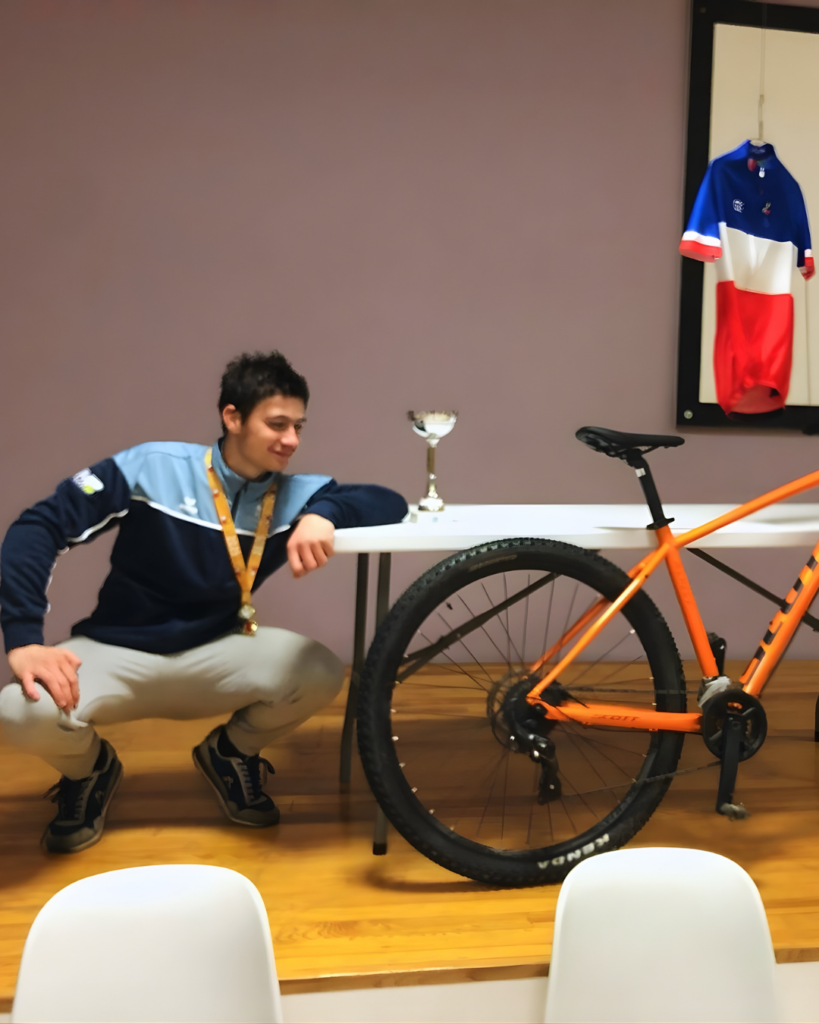 ~ Victor, champion de France de VTT, également en sport adapté.