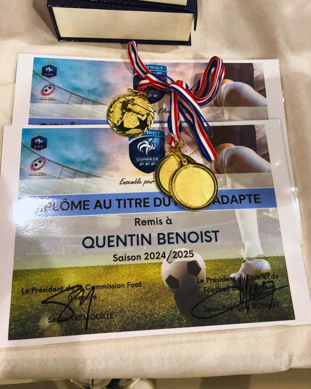 Le district Football 19 leur a remis une distinction soulignant leur implication, leur motivation et leur engagement tout au long de la saison. Une belle reconnaissance pour nos deux champions, qui portent haut les valeurs du sport adapté !