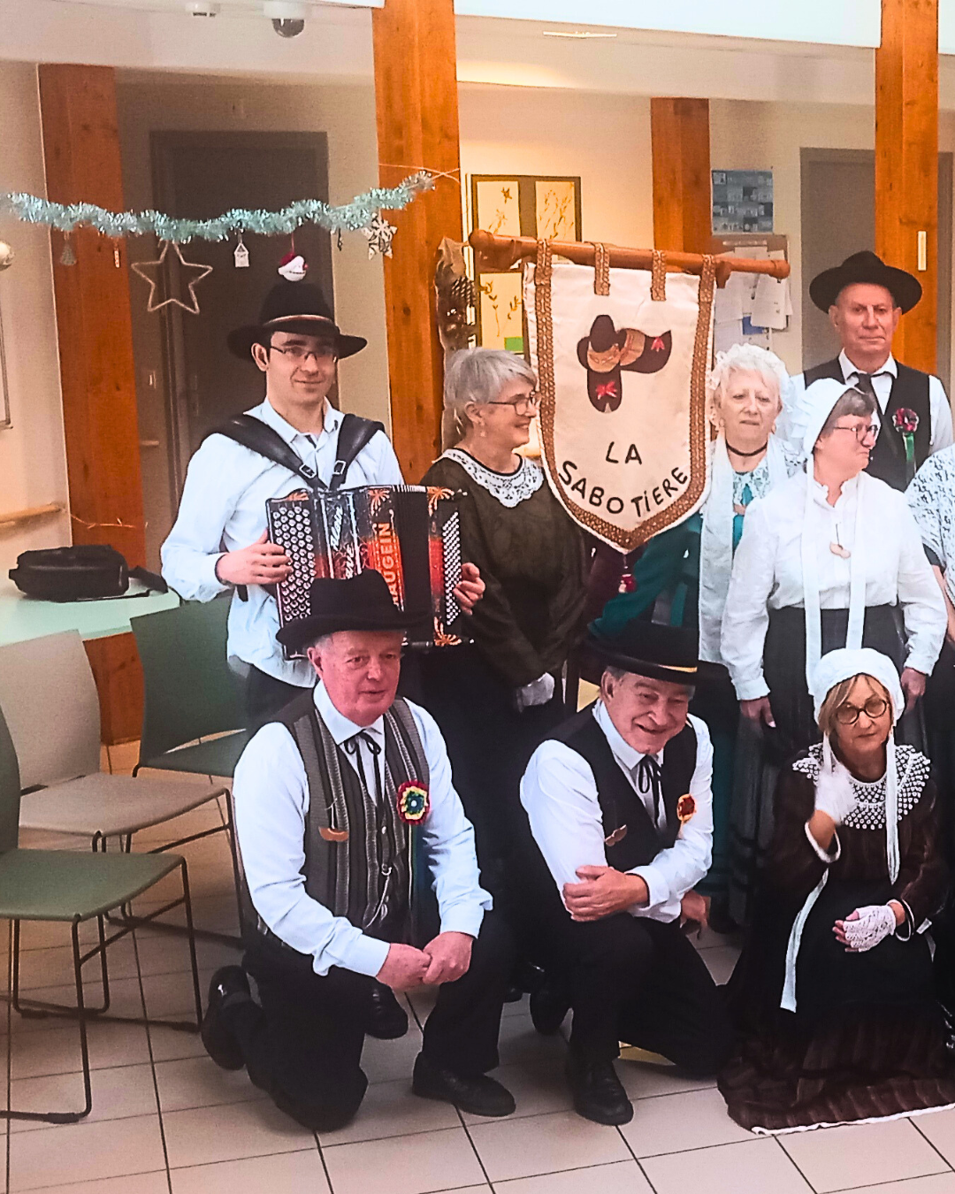 Le groupe folklorique La Sabotière est venu à leur rencontre pour offrir une représentation haute en couleurs, rythmée par des musiques, des danses et des chants traditionnels.