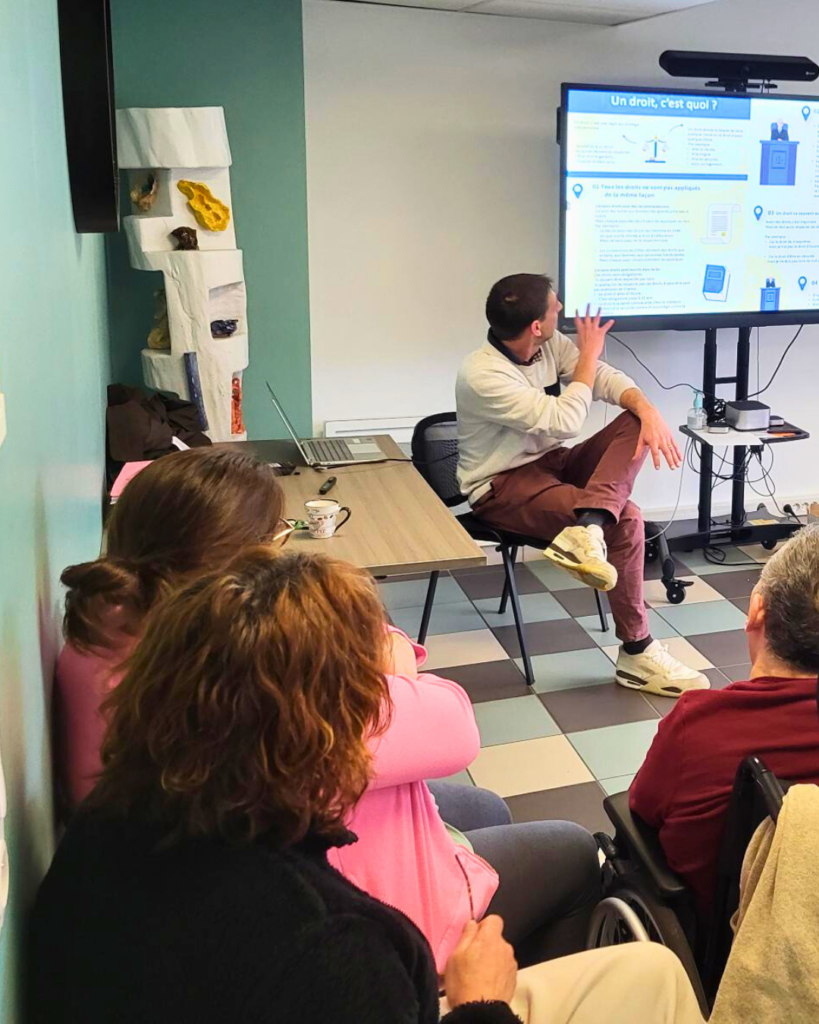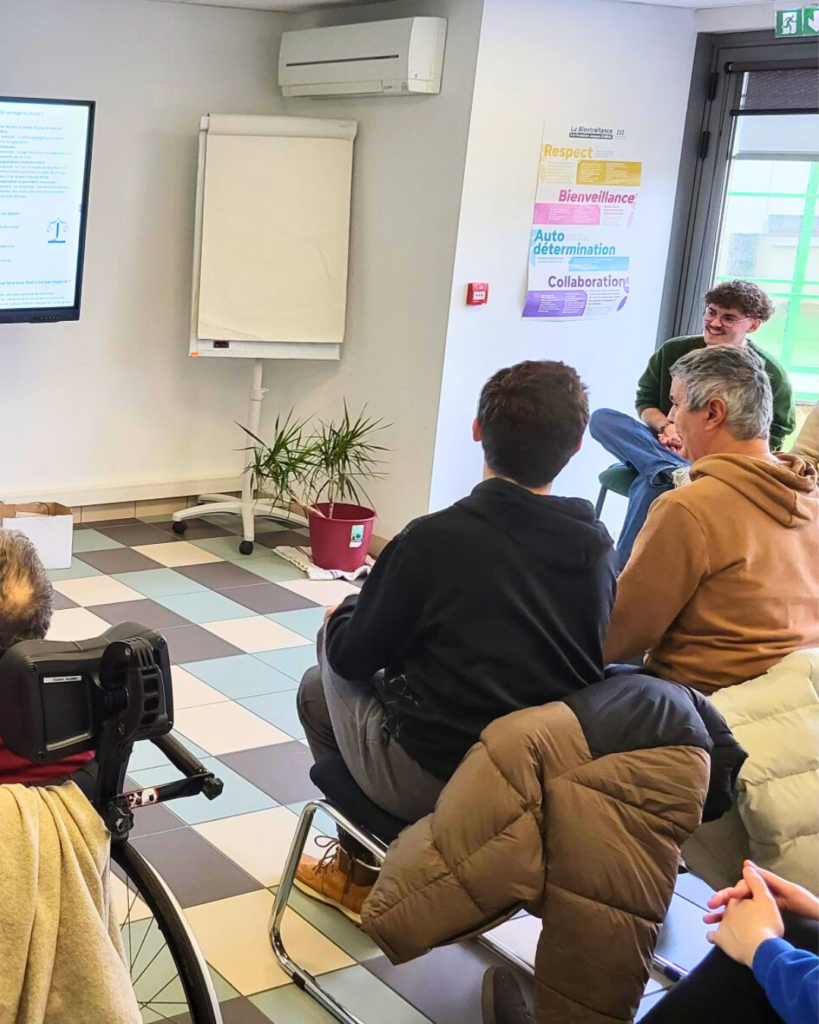Les résidants se sont pleinement impliqués dans cette conférence, en illustrant leurs propos par des exemples du quotidien, en partageant leurs expériences et en posant de nombreuses questions. Ce moment a démontré que, quel que soit le type de handicap ou le degré de déficience intellectuelle, les résidants peuvent exprimer leurs attentes, besoins et préférences dès lors qu’on leur offre un cadre bienveillant et des outils adaptés.