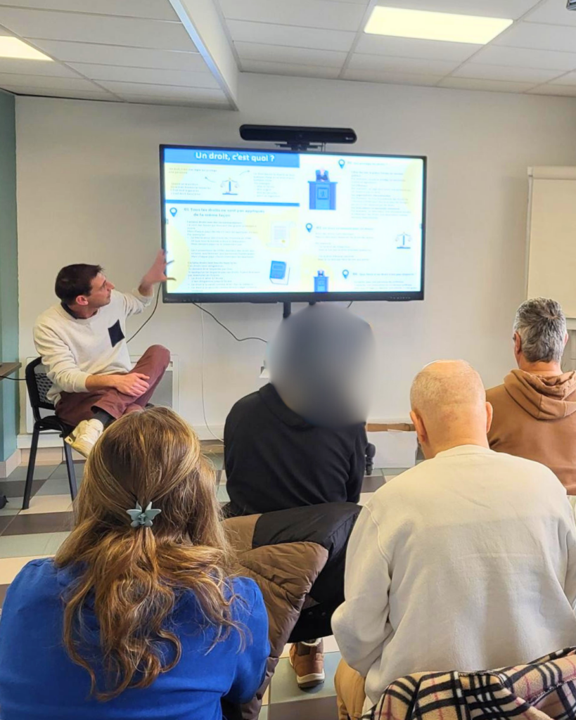 L’un des moments les plus appréciés a été l’activité interactive autour du jeu « J’ai le droit / Je n’ai pas le droit ». Sous forme de quiz, les résidants étaient invités à réagir à des situations concrètes : « Ai-je le droit d’être respecté ? », « De dire ce que je pense ? », « De voir ma famille ? », ou encore « Puis-je casser du matériel ? ». Ces exemples correspondent aux thématiques abordées dans les supports présentés lors de la conférence, qui rappellent notamment le droit au respect, à l’expression de son avis, aux liens avec les proches, mais aussi l’importance de respecter les règles de vie collective et le matériel.