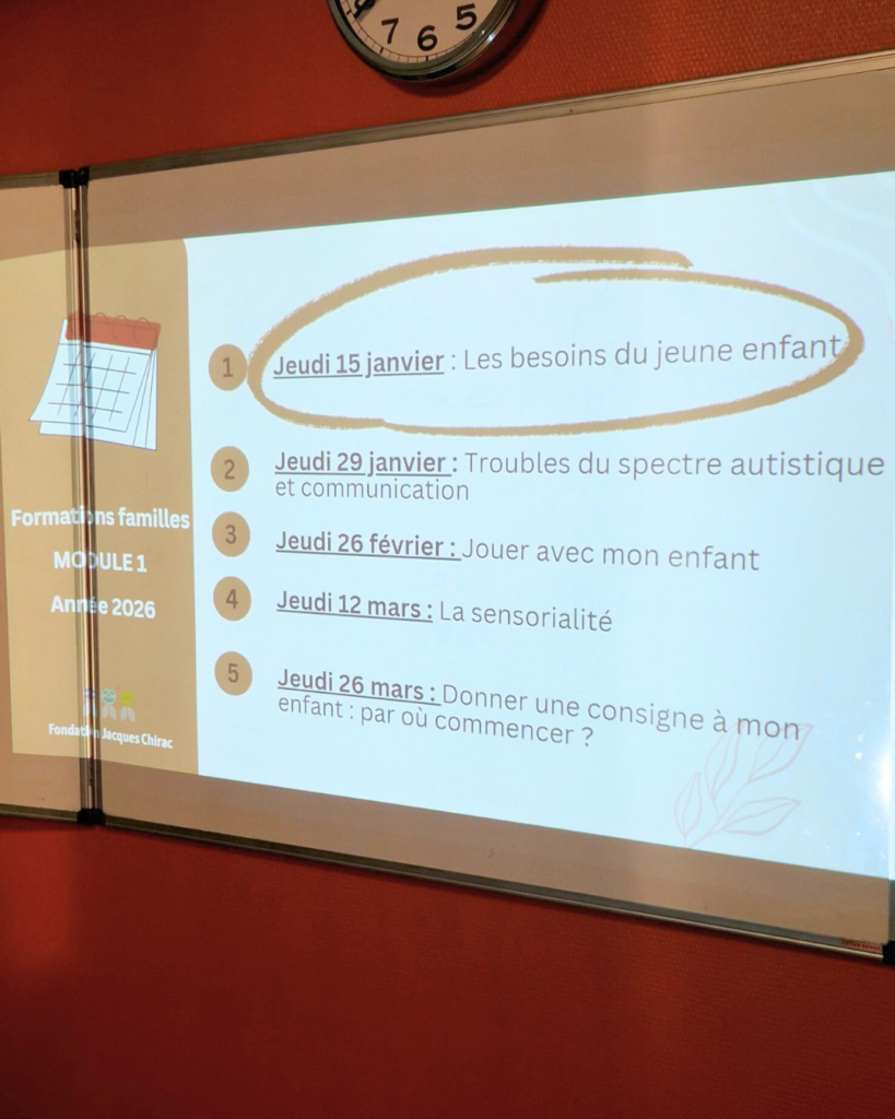 Conformément au projet d’établissement, plusieurs modules d’information et de transmission de connaissances leur ont été proposés afin de favoriser une meilleure compréhension du trouble du spectre de l’autisme (TSA) et des particularités de leurs enfants.